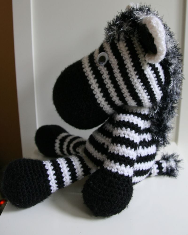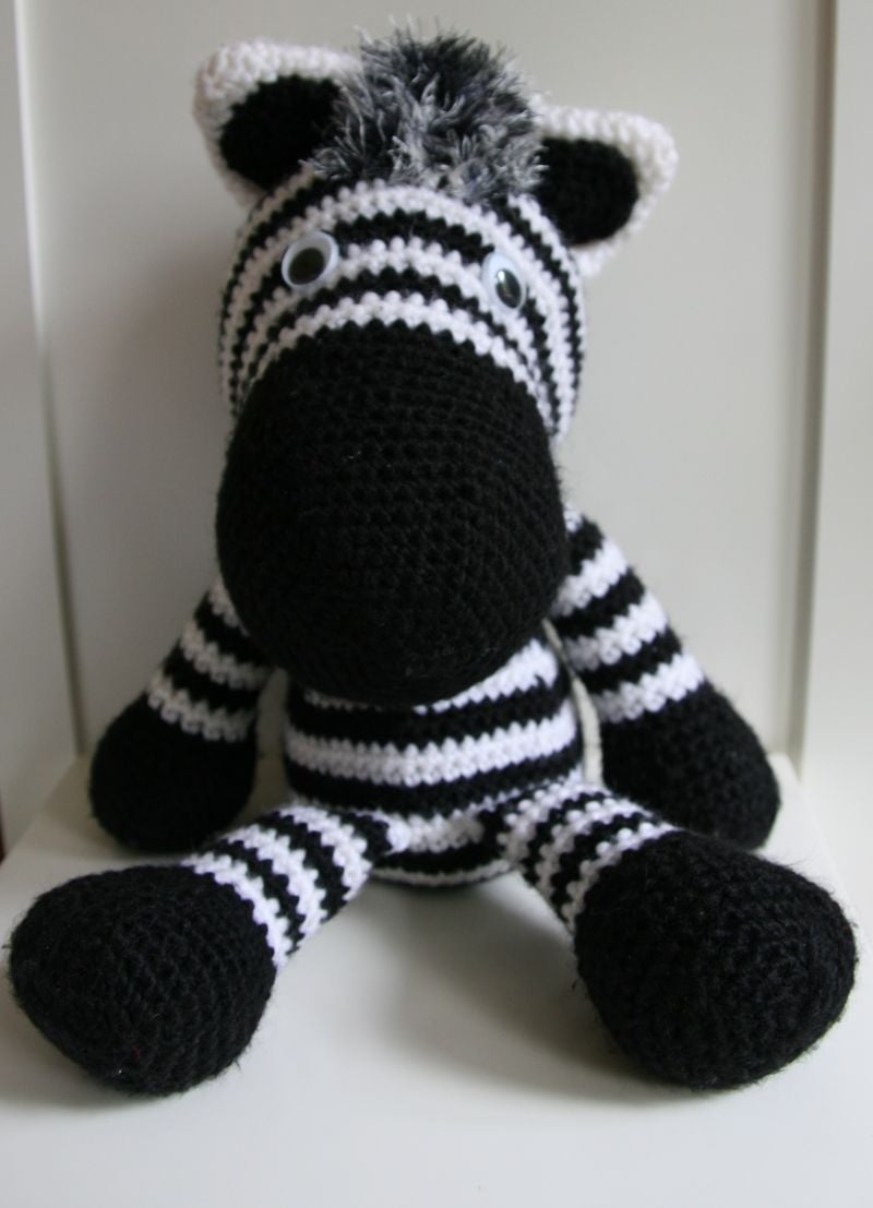 Streepje voor streepje ben ik er bij gekomen en meteen best groot. Je kunt mij ook bestellen in een effen kleurtje, maar dan lijk ik meer op een paard.
